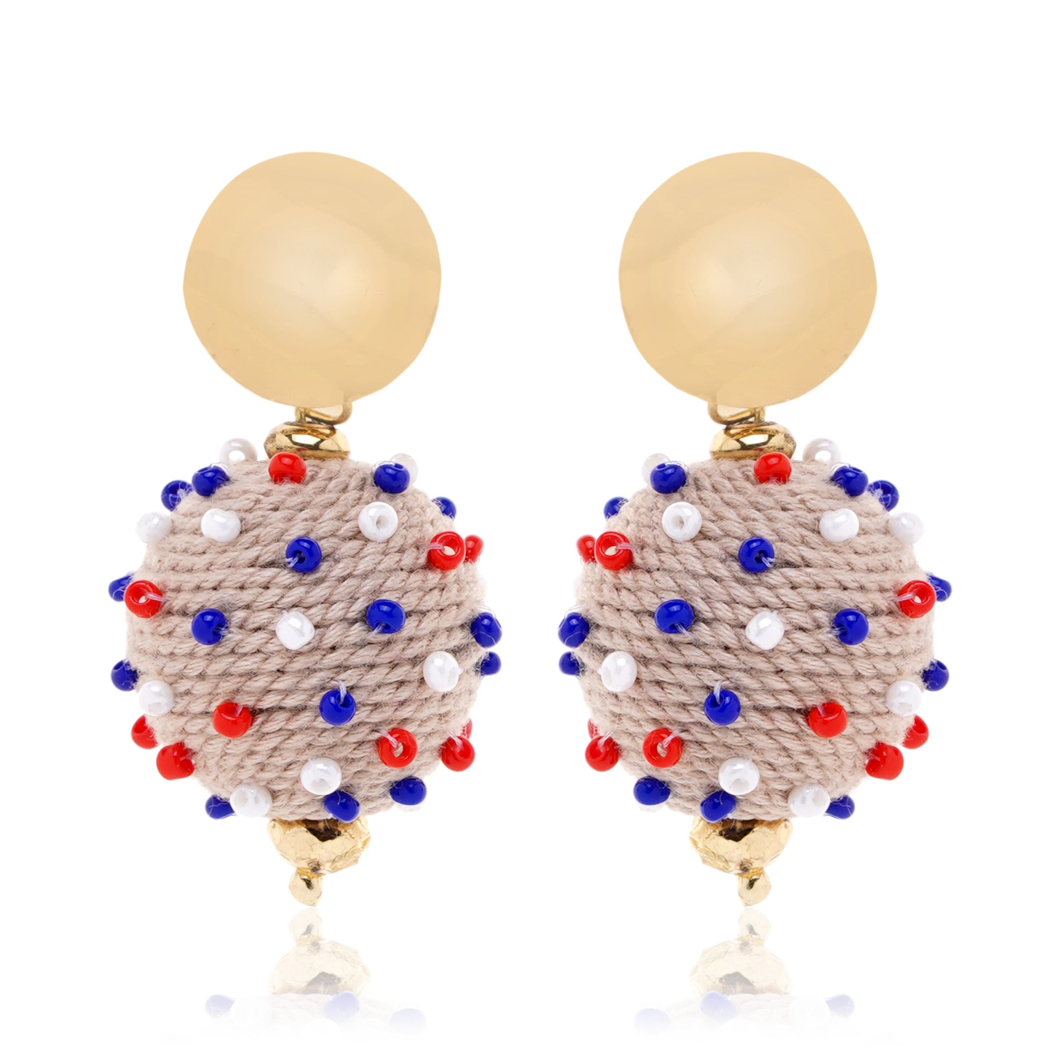 Patriotic Jute Ball 4th July Earring